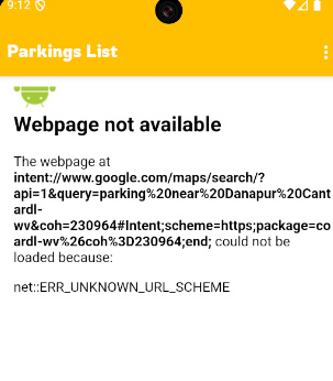 and when click it suppose to show Map Near by parking location through webpage but showing this error with extra part autoamtically adding in url is this : #Intent;scheme=https;package=co ardl-wv%26coh%3D230964; end;