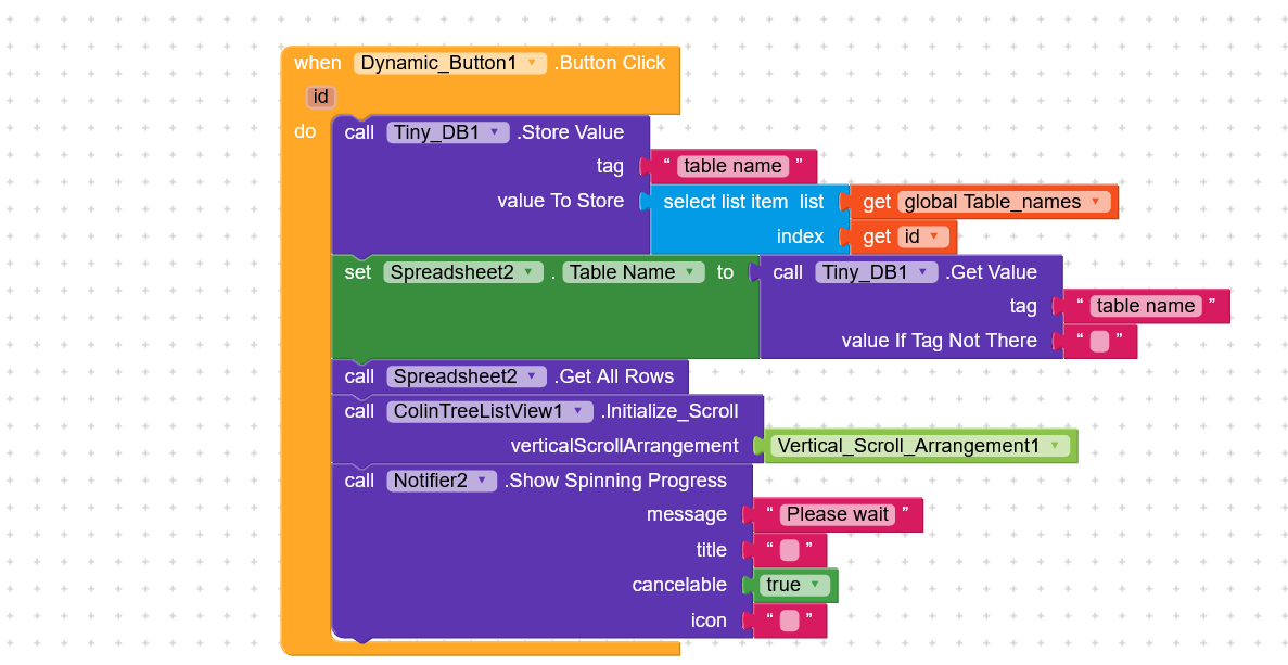 only one dynamic button, in that 8 (table name), each table name has seperate list
