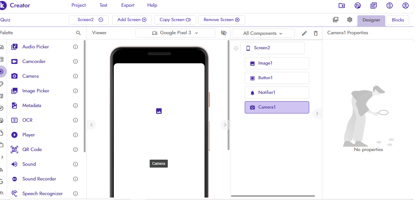Even with this simple components it has failed to show any picture after captured. Kodular has something issues with its own stability with large apps and it is quite impossible to figure out.
