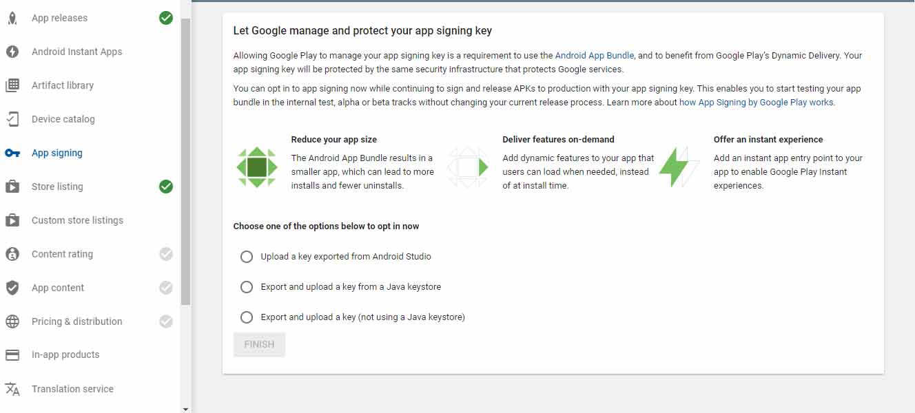 Upload key : The key you use to sign your first release. Sign every subsequent release with the same key to verify it’s from you. Keep your upload key safe. If it’s ever lost or compromised, contact developer support to replace it.