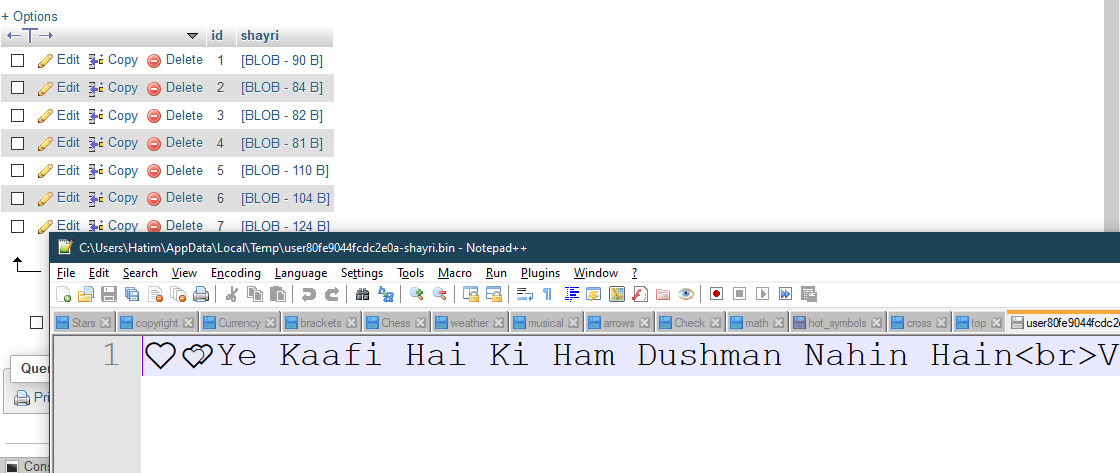 Then what about reading original data on phpMyAdmin???