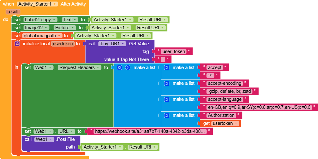 Also it looks like the postman example uses application/json as header and in the body the file to upload appears in json format. This is not possible like this in Kodular.