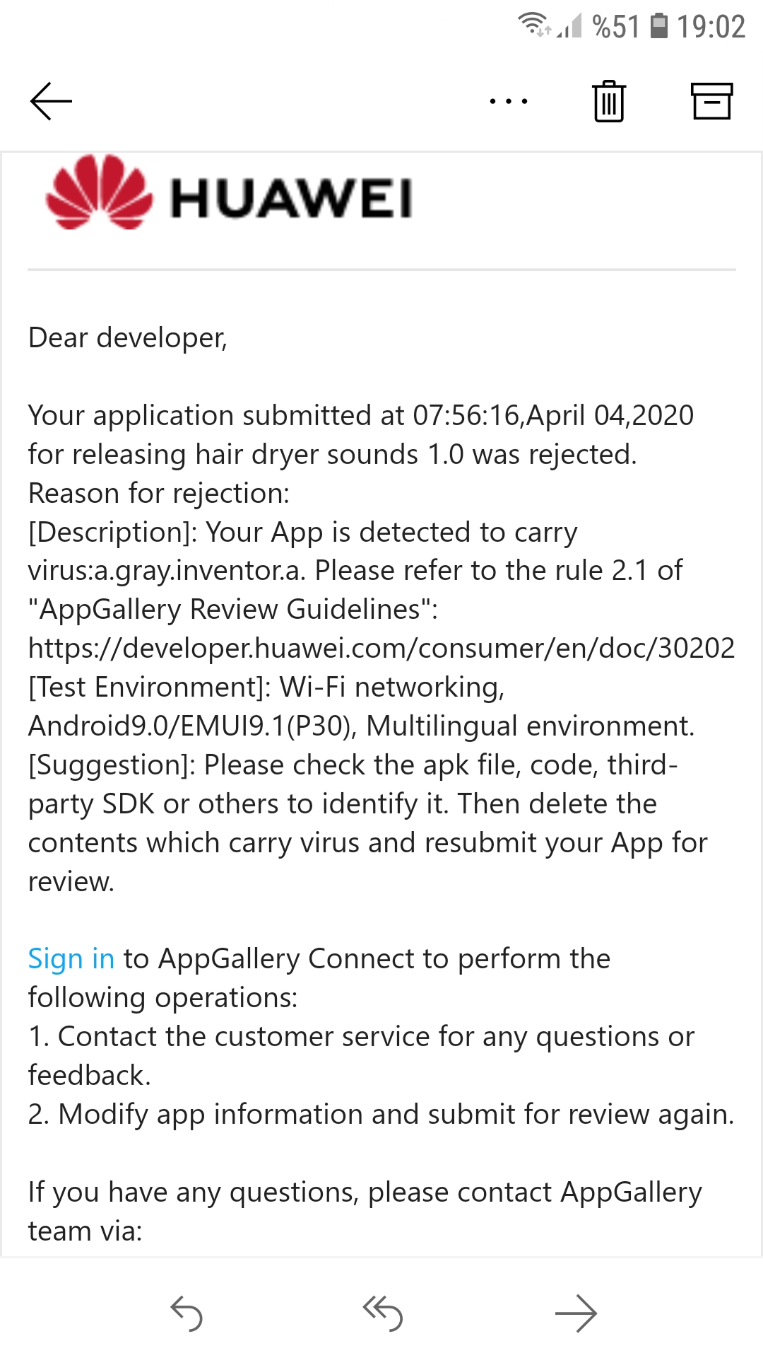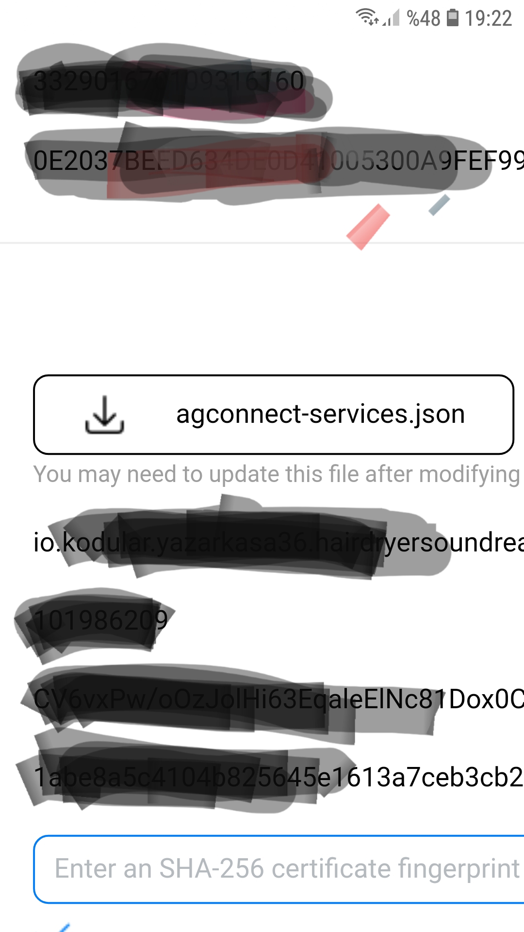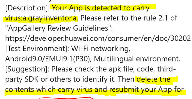 Hello everyone. I uploaded my app to huawei app gallery. Its been rejected . The reason on the image . Should i add the json file or something else?