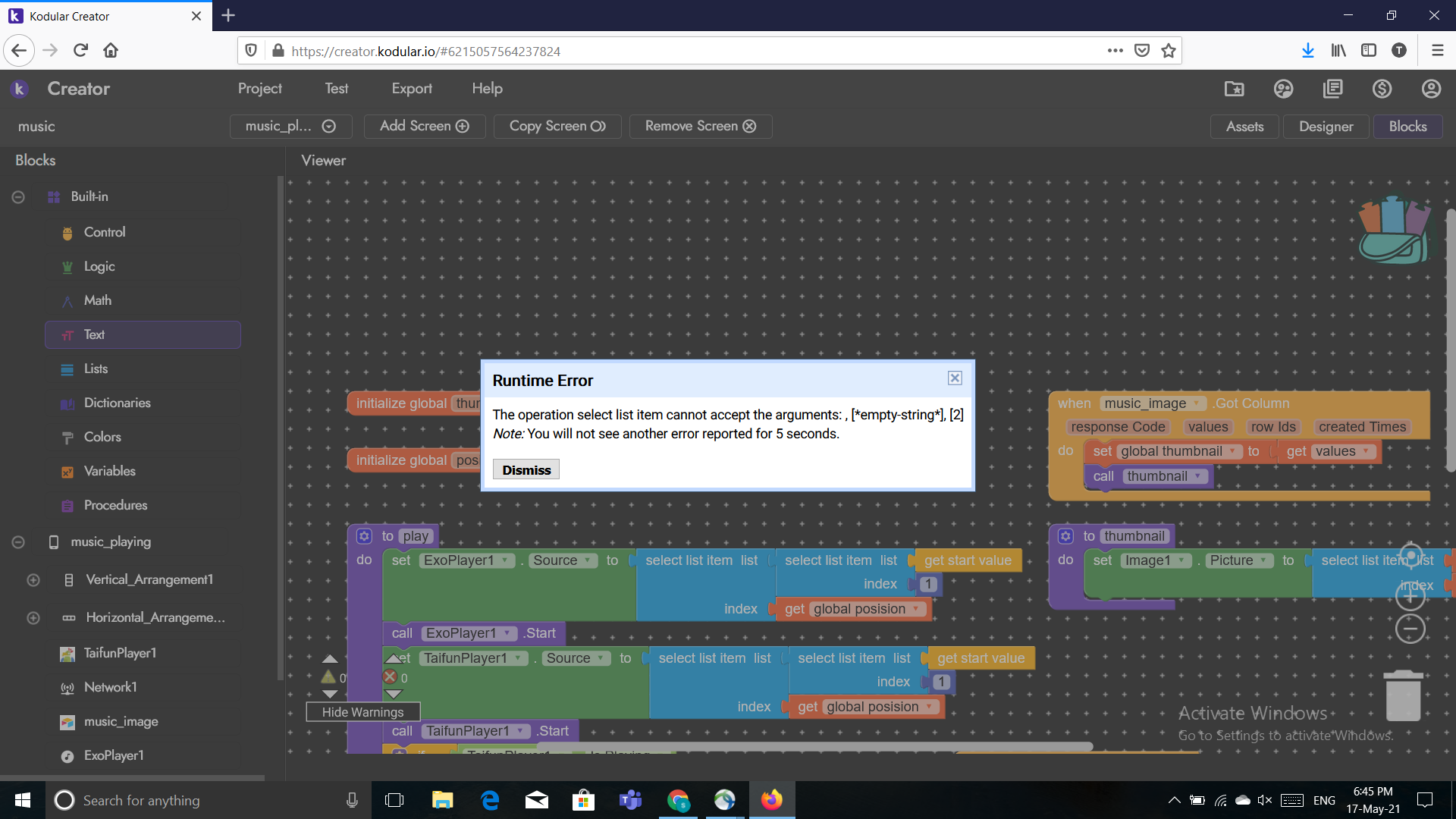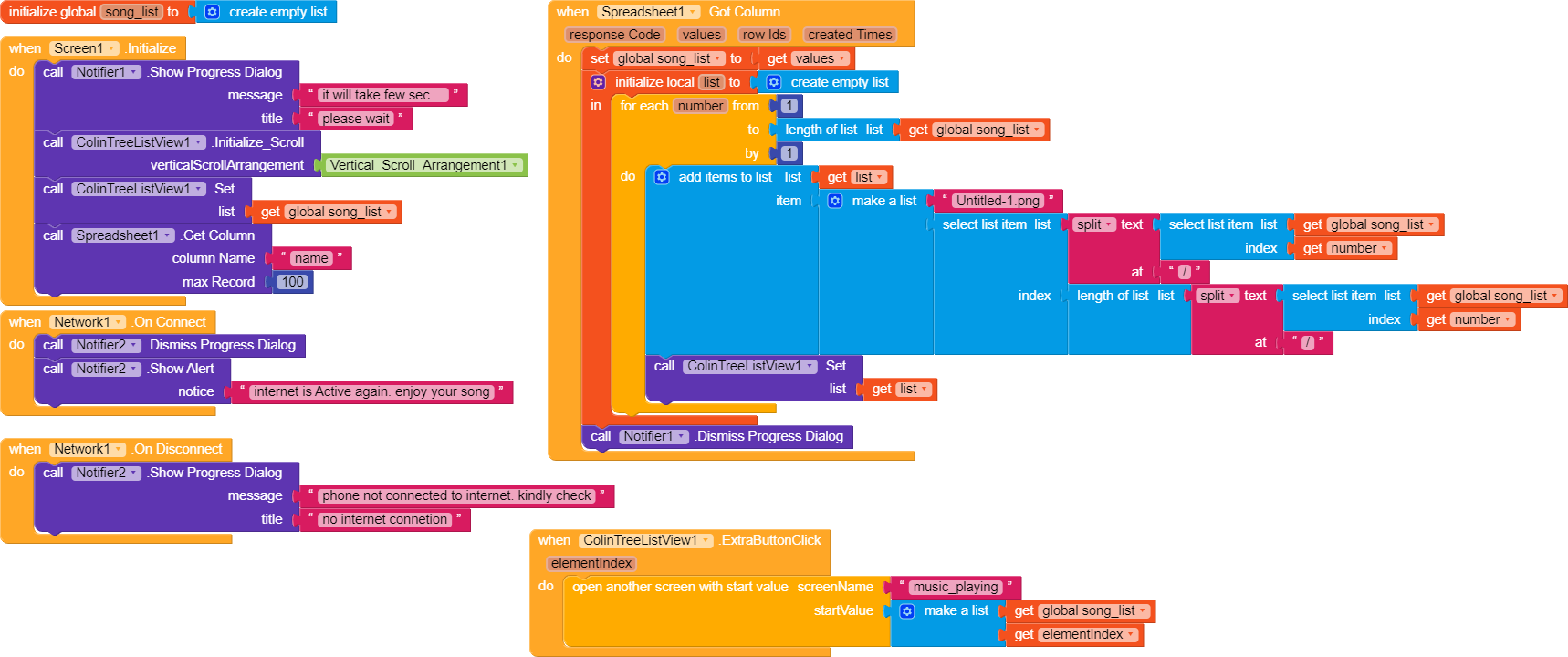 and the start value of my screen one has some song display as colintreelistview and all the sourse of song were set form spreadsheet (airtable)