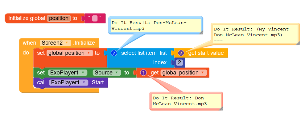 Try to inizialize global position to empty text and when screen inizialize set global posision to select list item list. Also debug get start value with Do it to see if you get values or not