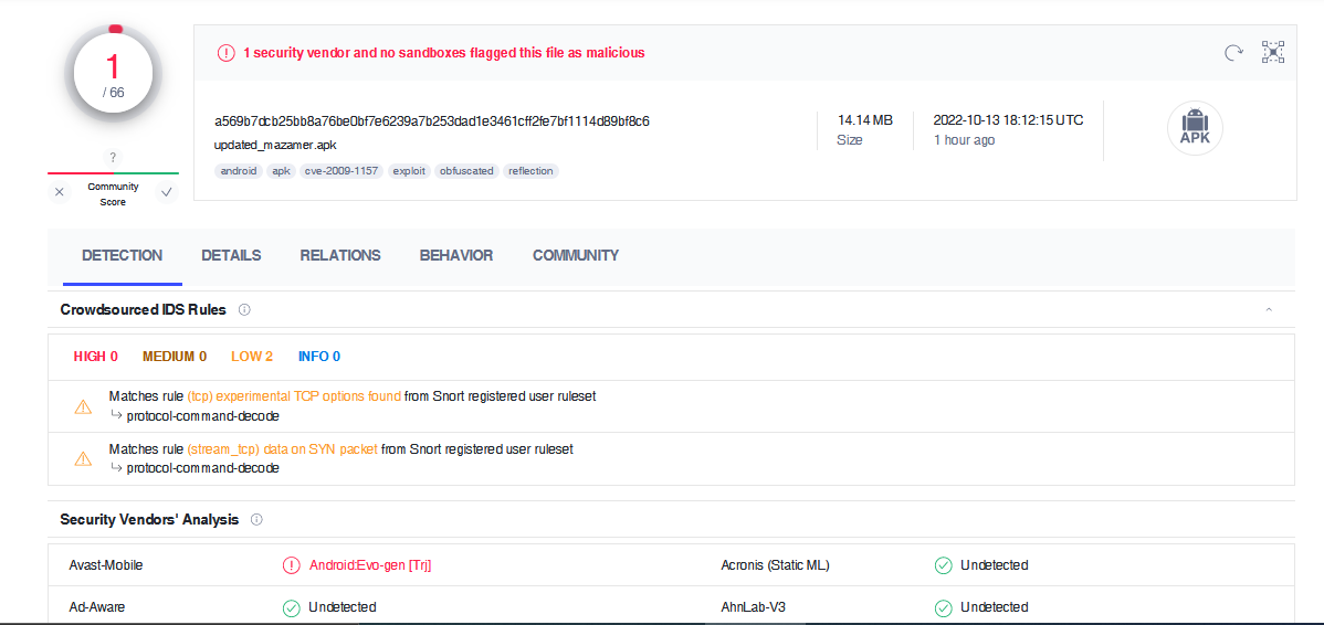 the exported apk of one of them is clear but the other on some devices like Oppo, Xiamoi and Huwaei detects trojan virus but samsung no..
