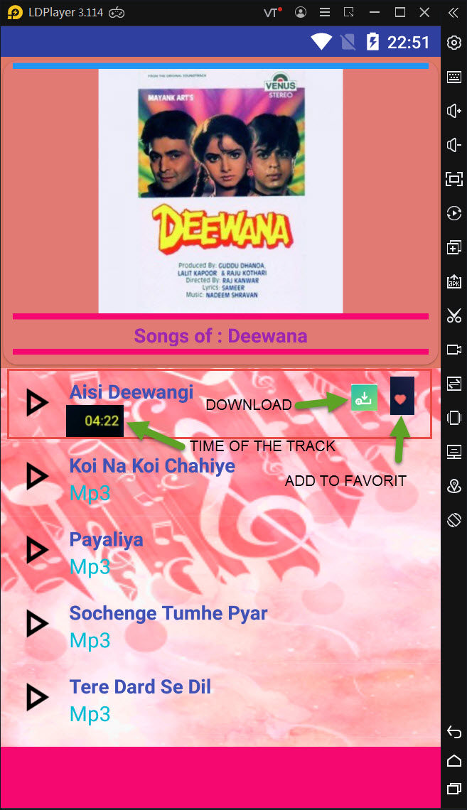 i wana add “dowloading” and “add to favorit” and add time of the songs