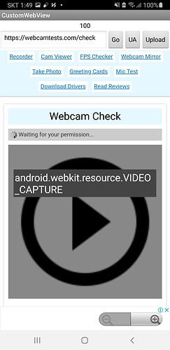 Thank you for reply. I checked code that you show and changed like that. And I tested webcamtests.com/check But permisson was denied. I gave the right everything.(camera, mic, data, gps) At chrome, that site is working but only app inventor...