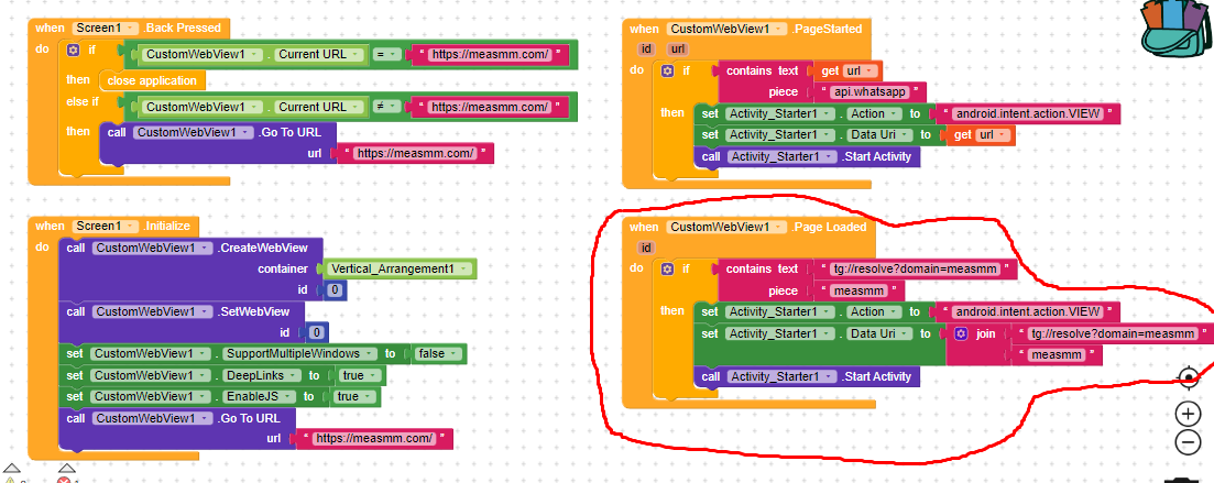 But how i said, in “pageload” after the app load the page, instant open telegram. Or I need duplicate the same of Whatsapp and change the “api.whatsapp” for t.me/?