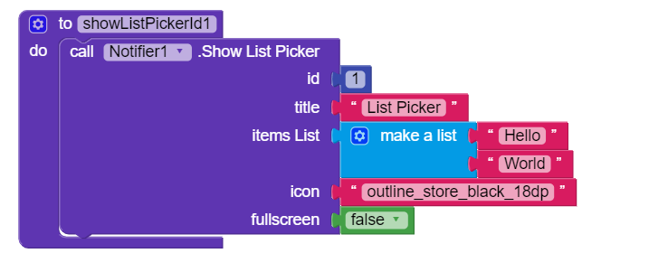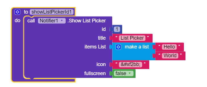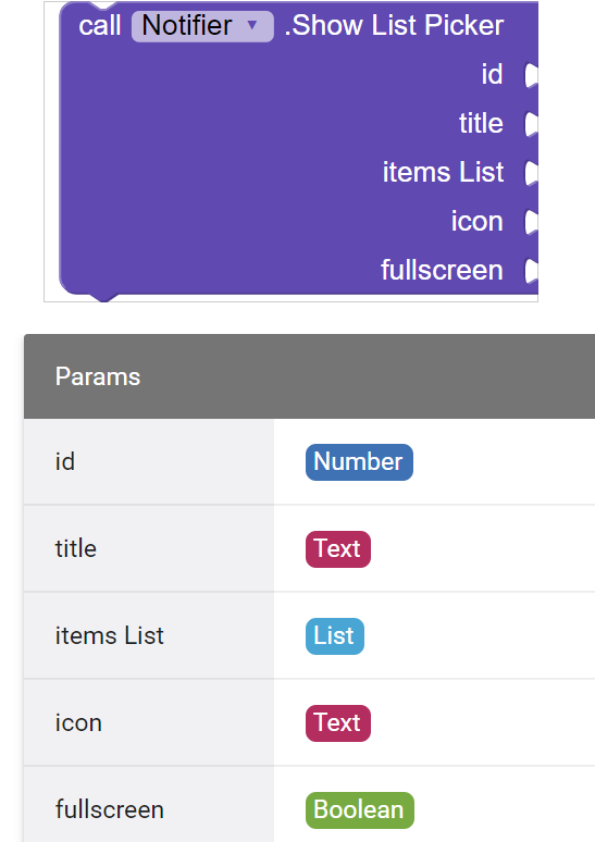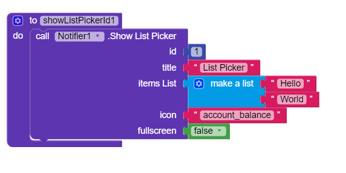 The Notifier Show List Picker Icon input is expecting TEXT