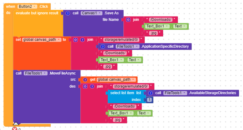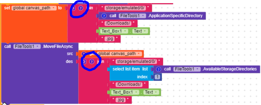 These are no proper paths at all (regardless of the Android version). Since you debugged your blocks, you should actually know this: