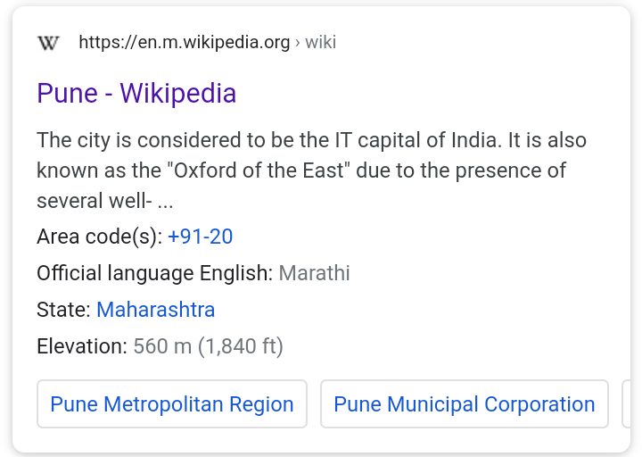Pune (/ˈpuːnə/ POO-nə; .mw-parser-output .IPA-label-small{font-size:85%}.mw-parser-output .references .IPA-label-small,.mw-parser-output .infobox .IPA-label-small,.mw-parser-output .navbox .IPA-label-small{font-size:100%}Marathi: [ˈpuɳe] ⓘ, ISO: Puṇē), previously spelled in English as Poona (the official name until 1978), is a city in the state of Maharashtra in the Deccan plateau in Western India. It is the administrative headquarters of the Pune district, and of Pune division. In terms Pune...