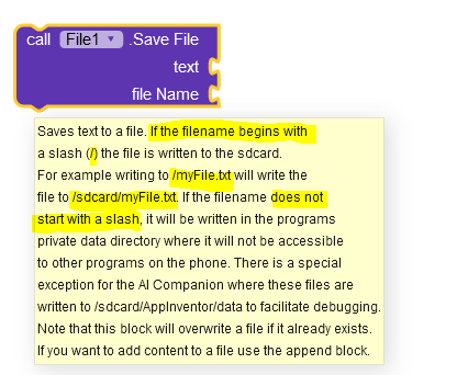 I named the file /filename.txt. But I used the append block to start with, so maybe that is my mistake. I should use the Save File block the first time?