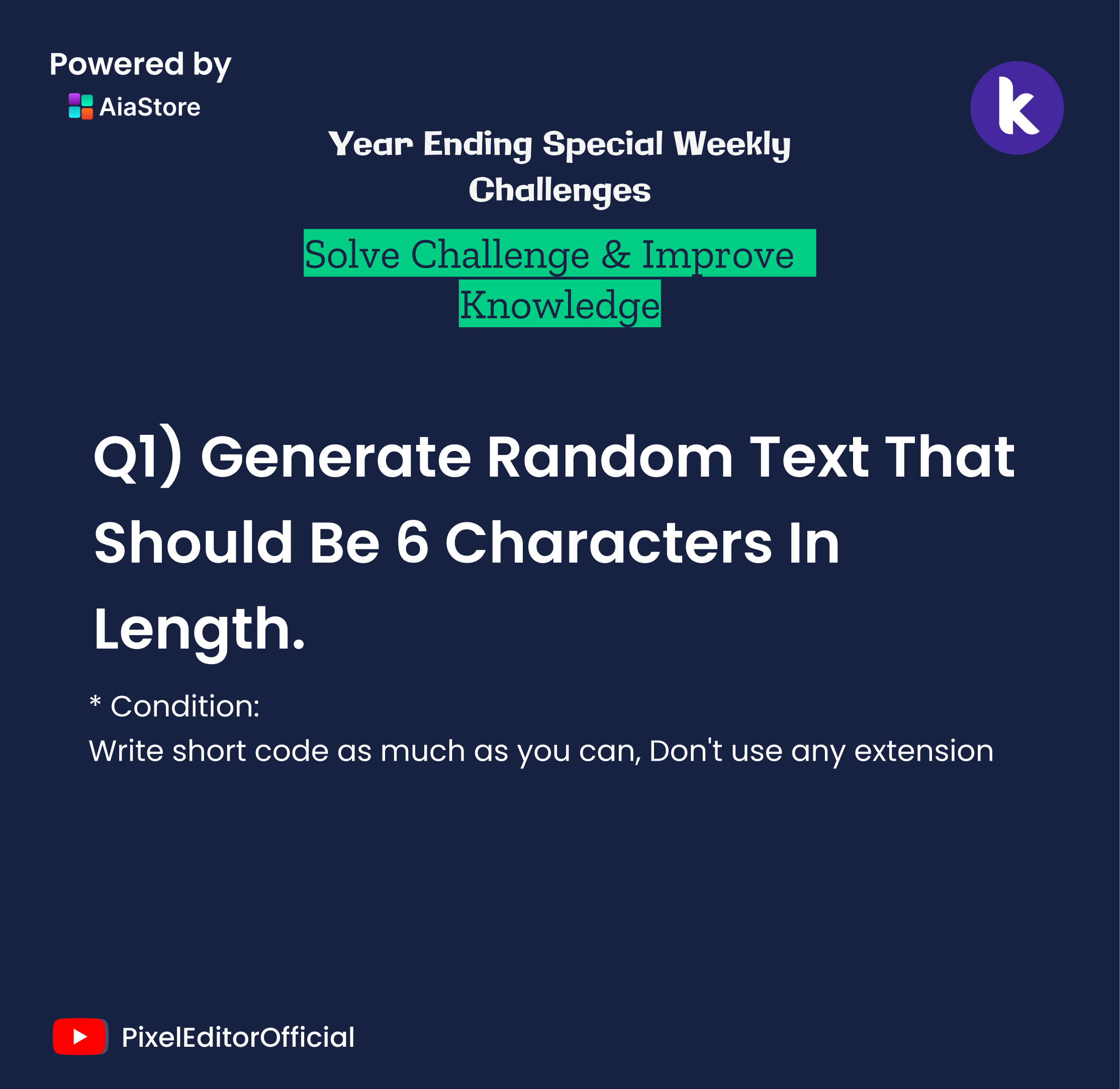 Q1) Generate Random Text That Should Be 6 Characters In Length.