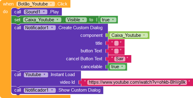 Don’t work (at least on Samsung Galaxy Grand Prime Android 5.1.1) if Youtube Player is set inside a custom notifier for that reason I post other solution.